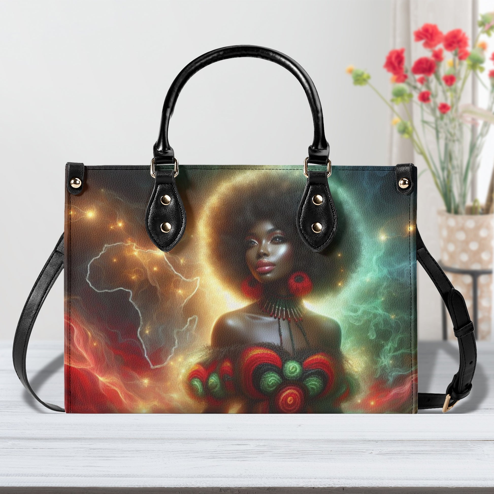 Discover the true beauty of Africa with our luxurious leather handbag. Immerse yourself in the rich culture and heritage of this native land while turning heads with its stunning design. Elevate your fashion sense with this exclusive piece, handcrafted with the essence of Africa.